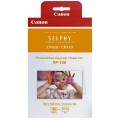 Setul Canon RP-108 contine 2 pachete de hartie foto a cate 54 de bucati la dimensiunea 10 x 15 cm, deci in total 108 coli pentru printat. La acestea se adauga 2 cartuse de tip ribbon color pentru printat (calculat pentru a printa cele 108 hartii foto).